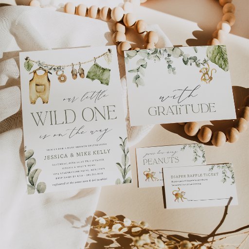Coletar palpites para o seu jogo de chá de bebê "quantos amendoins" com esses cartões fofos que apresentam folhagens de aquarela suave e uma ilustração de um macaco bebê.