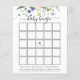 Cartão de bingo chá de fraldas com uma cascata de aquarela de flores silvestres e verde com uma abelha zinhada. Uma maneira divertida de interagir com os convidados do chá enquanto a mamãe a ser abre seus presentes.