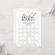 Apresentando nosso cartão de jogo do Bridal Bingo, projetado para a celebração da noiva moderna! Este design preto e branco minimalista adiciona um toque elegante a qualquer chá de panela, fazer-o uma atividade chique e divertida para os hóspedes. Perfeito para criar momentos memoráveis, este jogo certamente vai melhorar a alegria da ocasião. Projetado pela CaMiDesigns, ele se ajustado perfeitamente em qualquer tema nobre. Para obter assistência com pedidos, envio, informações sobre produtos e muito mais, entre em contato diretamente com o Atendimento ao Cliente da Zazzle.
