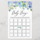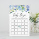 Bingo! Adicione este divertido jogo de bingo de chá de bebê ao seu evento. Ele apresenta uma guirlanda floral em aquarela de rosas azuis e hortênsias, rosas bege e folhagens. Personalize adicionando seus detalhes. Este cartão de jogo de bingo de chá de bebê floral é perfeito para chás de bebê de primavera e inverno. Itens correspondentes estão disponíveis.