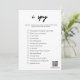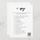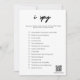 Elevem o entusiasmo e capturem momentos inesquecíveis com o Cartão de Jogo de Casamento Moderno I Spy. Este elegante e minimalista jogo de casamento é perfeito para casais que querem adicionar um toque de diversão e criatividade ao seu dia especial. Com este jogo de I Spy, seus hóspedes vão embarcar numa emocionante caçada de escavadores, armados com seus telefones ou câmeras. Eles procurarão ansiosamente por itens e eventos específicos durante o seu casamento, capturando cada descoberta com um clique. De momentos sentidos a fotos francas, este jogo encoraja seus entes queridos a explodir seus telefones com fotos cativantes que realmente incorporam a alegria de sua celebração. Para tornar o jogo ainda mais interativo, você pode personalizar uma lista de coisas para seus convidados "espiarem" e fotografarem. Quer seja um beijo romântico entre recém-casados ou um pano de fundo de pôr do sol hipnotizante, cada foto será uma memória apreciada. Seus hóspedes podem compartilhar facilmente suas capturas nas mídias sociais usando sua hashtag designada, permitindo que amigos e familiares próximos e distantes façam parte da magia. Como alternativa, eles podem carregar suas fotos em uma pasta compartilhada usando o código QR fornecido, garantindo que nenhum momento passe despercebido. Adicione um entusiasmo às suas festividades de casamento com o Cartão de Jogo de Casamento Moderno I Spy. Que a aventura comece quando seus hóspedes embarcarem numa caçada fototesoura que criará memórias duradouras para todos os envolvidos.