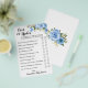 Jogo de chá de bebê com flores azuis acima ou abaixo. Altere a redação para o design. Para personalização adicional (alterar pergunta e outras palavras, cor da fonte, estilo da fonte), clique em personalizar, role para baixo e clique no link "clique para personalizar ainda mais". COMO JOGAR: Os convidados adivinham se acham que o número em cada afirmação está acima ou abaixo