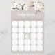 Adicione um pouco de diversão ao seu chá de fraldas com este elegante cartão de bingo de bebê floral boho. Projetado com flores brancas macios e verde seco neutro em um fundo quente, é a atividade perfeita para os hóspedes enquanto os presentes são abertos. Na moda e adição interativa a um "bebê em flor" ou chá inspirado no jardim.