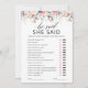 Cartão de Jogo de Chá de Noiva Ele Disse Ela Disse
