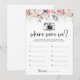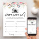 O Cartão de Jogo de Chá de Noiva Floral Rosado "Where Were We" oferece diversão personalizável com seu design floral apresentando rosas cor de rosa. Perfeito para chás de noiva, os convidados podem recordar e adivinhar onde vários eventos ocorreram, adicionando um elemento interativo à celebração.