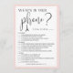 O cartão de jogo de chá de panela chic corresponde à nossa coleção de chás de panela Romance de Paris e apresenta letras brancas de script preto e bordas cor-de-rosa suaves com torre Eiffel e minúsculos sotaques de pássaros. Cartão duplo permite que você ganhe dois jogos em um só! A frente mostra como você conhece a noiva e se reverte para o que está em seu telefone. Personalize com a noiva para ser o nome e a data do chá. As perguntas "What's in Your Phone" (O que há no seu telefone) são completamente personalizáveis usando os campos de modelo na página. Para personalização adicional, sinta-se à vontade para entrar em contato comigo!