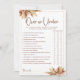 Eleve o seu chá de panela inspirado em boho com o nosso cartão de jogo "Grama de Pampas Acima e Abaixo", adicionando um toque de charme rústico e emoção às festividades. Os convidados se deliciarão adivinhando se cenários específicos relacionados ao casamento estão acima ou abaixo dos parâmetros especificados, tudo isso contra um pano de fundo de tons dourados e sotaques caprichosos de grama de pampas. Perfeito para temas de chá de panela boho, este jogo promete risadas e diversão, criando memórias inesquecíveis para a noiva e seus convidados.