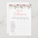 Cartão de Jogo de Chuva de Noiva Floral Rosa