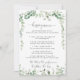 Este cartão verde de jogos de cardápio de beijos de eucalipto é perfeito para uma recepção de casamento moderna. O design apresenta galhos e folhas botânicas elegantes e desenhadas a aquarela, desenhadas à mão, adornando quadros geométricos.