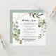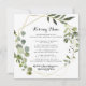 Este cartão de jogo de cardápio de beijos de ouro geométrico é perfeito para uma simples recepção de casamento. A design apresenta lindas folhas verdes pintadas à mão, enfeitando um quadro geométrico dourado.