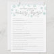 Teste o conhecimento dos convidados do seu chá de fraldas sobre rimas de berçário com este cartão de jogo bonito com um tema de floco de neve de inverno. Coordena-se com a nossa coleção de chás de fraldas "Bebê está frio lá fora". RESPOSTAS 1. PECK OF PICKLED PEPPERS 2. BUTCHER BAKER CANDLESTICK MAKER 3. BEIJARAM-NOS 4. ESPOSA DO AGRICULTOR 5. GRACE 6.4 E 20 7. TUFET 8. PIE DE NATAL 9. CACHORRO 10. PRATA CINTO 11. UM PIG 12. 13,3 BOLSAS CHEIAS 14. UM PONY 15. NOVE DIAS 16. UM 17. GORDURA 18. SEUS MITTENS Veja a coleção de chás de fraldas de inverno de cheio aqui: