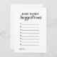 O cartão de jogo de Sugestões de Nome do Bebê não só serve como uma atividade deliciosa, como também duplica como uma vitória sincera para os pais que esperam. À medida que os hóspedes se reúnem para compartilhar suas sugestões, eles contribuem para o entusiasmo e a antecipação em torno da chegada iminente.