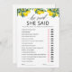 Cartão de Jogo Ele Disse, Ela Disse para Chá de No
