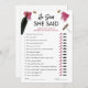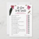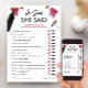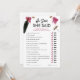 Apresentamos nosso moderno e divertido cartão de jogo He Said She Said, perfeito para um tema de Chá de Noiva com Vinho. Com seu design burgundy elegante, este jogo adiciona um toque de sofisticação à sua celebração, seja um chá de noiva, despedida de solteira ou evento de casamento. Prepare-se para jogar e rir com seus convidados enquanto aproveita o vinho antes dos votos com este jogo divertido. Além disso, todas as frases são personalizáveis para se adequar ao seu estilo pessoal e detalhes do evento!