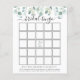 Placa de bingo chá de panela com uma cascata aquosa de eucalipto e verde. Uma maneira divertida de interagir com os convidados do chá enquanto a futura noiva abre seus presentes.