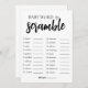 Um simples e elegante Cartão de Jogo do Word Scramble com palavras divertidas e com tema de casamento para hóspedes desembaraçarem. Perfeito por adicionar um toque de entretenimento à sua celebração noiva num estilo minimalista.