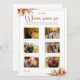 O Cartão de Jogo Onde Estivemos Outono Capim-dos-Pampas oferece uma reviravolta única. Seu design rústico em aquarela apresenta um casal de fotos em meio ao capim-dos-pampas seco, perfeito para chás de panela ou festas de despedida de solteira com tema boho. Os convidados podem se divertir tentando adivinhar os locais dos eventos memoráveis retratados no cartão, adicionando um elemento divertido e interativo à celebração de outono.