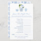 Jogo para chá de bebê "Adivinhe o Preço dos Itens de Bebê" em um tema elegante de jarra de gengibre azul e branco. Todo o texto é totalmente personalizável de acordo com as suas necessidades.