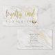 Fundo de mármore branco com sotaques dourados e um script personalizado com uma letra elegante manuscrita. O verso mantém todas as informações de negócios em uma fonte elegante e minimalista