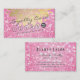 Artista de ativação moderna de cartão-fidelidade e lista de cabelo Vintage Floral Dourado com Cartão de visita de fundo brilhante rosa elegante.