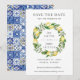 Este cartão de lembrança de casamento elegante apresenta uma grinalda de limão em aquarela de verão. Projetado para combinar com a nossa coleção de casamento Lemon Mediterranean. Personalize-o com seus detalhes de forma fácil e rápida, basta pressionar o botão personalizar para reorganizar e formatar o estilo e a colocação do texto. (c) The Happy Cat Studio