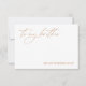 Esta carta branca elegante com caligrafia "Ao Meu Irmão no Meu Dia de Casamento" Mensagem de Casamento da Manhã é a forma perfeita de expressar seu amor e gratidão ao seu irmão no dia especial. Com sua bela mensagem design e sincera, este cartão certamente fará uma impressão duradoura em seu irmão e o deixará saber o quanto ele significa para você. Projetado para coordenar com a Coleção de Convite para Casamento "Chloe". Visualize o link de coleção nesta página para ver todos os itens correspondentes nesta bela design.