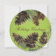 Um cartão bonito do feriado do Natal a enviar a todos seus amigos e membros da família, características um cartão redondo com um fundo de linho verde bonito do olhar, cones do pinho, ramos de árvore, e texto customizável que lê cartões de natal na parte dianteira, no mesmo fundo de linho verde, em cones do pinho, e em ramos com uma área customizável para adicionar sobre seus nome de família, nomes, e parte traseira do ano em curso.