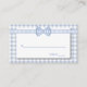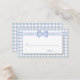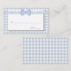 Cartões de lugar de escolta chic country, feitos em um padrão de gingham azul-claro e branco, com uma área de texto branca. Os gráficos de uma fita e um arco de gingham azul-claro e branco esticam-se na parte superior. Produtos de casamento correspondentes disponíveis.