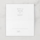 Este moderno guião prateado dobrado é perfeito para uma recepção de casamento minimalista. A simples design de cinza de cor prateada apresenta uma tipografia industrial única, com estilo 'boho' moderno. Personalizável em qualquer cor. Mantenha o design mínimo e elegante, como está, ou personalize-o adicionando seus próprios gráficos e trabalhos de arte. Personalize a parte de trás das cartas com os nomes da noiva e do noivo e a data. Compre em massa e escreva os nomes de convidado e os números de tabela nos cartões impressos quando eles chegarem.