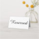 Essa placa reservada permite que todos saibam não se sentar em um lugar reservado em uma mesa ou em assentos em um casamento ou outro evento.