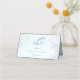 Avise aos convidados onde eles estarão sentados com um cartão de lugar de recepção de casamento de Golfinho Azul. Place card design apresenta um golfinho metálico estilizado contra um fundo de ondas oceânicas mudas, enfeitado com rolhas elegantes. Material adicional disponível com esta design também.