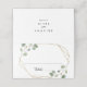 Este cartão de casamento geométrico de ouro de eucalipto é perfeito para um casamento rústico. A design apresenta galhos botânicos verdes de eucalipto, desenhados à mão, e folhas que enfeitam um quadro elegante. Personalize a parte de trás do cartão de lugar com os nomes da noiva e do noivo e a data.