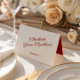 Apresentando um esquema lúdico de cores vermelho e branco, este cartão mostra elementos delicados de design que evocam uma sensação nostálgica e retrorreflectora. Sua estética eterno combina sofisticação com capricho, oferecendo uma maneira refinada de receber seus convidados. Perfeito para qualquer tema de casamento, este cartão de lugar não só ajuda a organizar seus assentos, como também adiciona um talento pessoal e na moda à sua celebração. Junte-o a outros itens coordenadores da coleção para uma aparência de casamento completa e coesa.