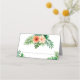 Belo design de carta de casamento com flores aquáticas e folhagem em fundo branco na frente e fundo verde de menta no fundo.