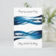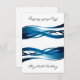 Este design de cartão de localização abstrato moderno apresenta um padrão de ondas de fita azul entrelaçadas. Insira o(s) nome(s) do(s) seu(s) convidado(s) no lugar do texto de exemplo mostrado. Você pode alterar as fontes e tamanhos de fonte, bem como mover o texto conforme desejar. Por favor, note que este cartão não vem pré-dobrado. Você pode dobrar o cartão ao meio para usar como um cartão de localização estilo tent.