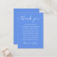 Um elegante conjunto de cartões de agradecimento para recepção de casamento. Personalizado com sua mensagem especial de agradecimento em tipografia estilosa em um fundo azul centáurea. Você pode personalizar o fundo para a cor do tema do seu casamento favorito. Um agradecimento especial aos seus convidados. Criado por Thisisnotme