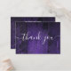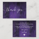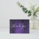 Um cartão de agradecimento de recepção de casamento boho elegante em madeira rústica roxa, personalizado com uma mensagem especial e os nomes da noiva e do noivo. Criado por Thisisnotme©