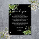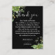 Cartão De Lugar Agradecimento de casamento floral verde com preto