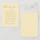 Um elegante conjunto de cartões de agradecimento para recepção de casamento. Personalizado com sua mensagem especial de agradecimento em tipografia dourada estilosa em um fundo amarelo botão-de-ouro. Você pode personalizar o fundo para a cor do tema do seu casamento favorito. Um agradecimento especial para seus convidados. Criado por Thisisnotme