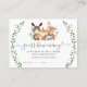 Personalize esta linda e colorida floresta verde adivinhem quantos jogos de chá de fraldas fazem cartas com suas próprias formulações, fácil e rapidamente. Este design ilustra as verduras rústicas de aquarelas, folhas de folhagem e adoráveis animais florestais: raposa, veado, esquilo, coelho, alce e guaxinim.
