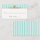 Cartão De Lugar Aqua, Stripes Brancas com Placecard de Rolos Doura