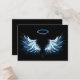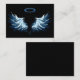 Cartão De Lugar Asas Anjos Azuis Brilhantes em fundo preto