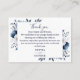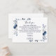 Um cartão de agradecimento de recepção de casamento floral azul marinho e branco elegante, personalizado com uma mensagem especial e os nomes da noiva e do noivo. Projetado por Thisisnotme©