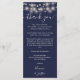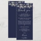 Um cartão de agradecimento de recepção de casamento azul-marinho elegante com lindas luzes de corda. Personalizado com a sua mensagem especial de agradecimento em tipografia elegante. Um especial agradecimento para os seus convidados. Desenhado por Thisisnotme