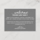 Este encantador texto branco no cartão de boas-vindas da cinza, colocado no seu saco de boas-vindas ou cesto em suas acomodações, é uma maneira agradável de obrigado para seus convidados fora da cidade pelo viagem que eles precisavam fazer para chegar ao seu casamento.