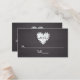 Cartaz de papel no quadro, com um cartão de acompanhante de casamento monograma, com um papel de notebook, adoram coração com buracos no quadro negro. No coração há suas iniciais. Este monograma de modelo de casamento rústico e monograma é completamente personalizável e é perfeito para um casamento casual especialmente para professores. Texto em branco usando uma fonte que se parece com escrita manual.