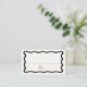 Adicione um toque de na moda à sua recepção de casamento ou evento especial com os cartões de casamento do Modern Wavy Frame! O design retrovisor exibe "Mesa" em um script preto manuscrito com espaço para você escrever o nome do convidado e o número da tabela. Uma borda ondulada preta rodeia o design contrastando com um fundo de marfim leve. A parte de trás do cartão de lugar liso mostra seus nomes e data de casamento em letras negros.