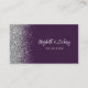 Esta elegante e moderna carta de escolta reservada para mesa de casamento apresenta um design brilhante falso prateado ao longo de uma borda num fundo roxo escuro. A frente do cartão fornece espaço para o nome do convidado e o número da tabela na forma de retângulos de cinza prateada. A palavra "mesa" aparece no guião de escrita de cinzas prateadas. Personalize a parte de trás do cartão com os nomes da noiva e do noivo em script de escrita manual e a data de casamento abaixo na fonte sans serif.