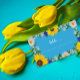 Céu azul de Verão com girassóis amarelos ouros, margaridas e várias flores silvestres com vegetação botânica
