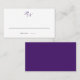 Cartão de casamento clássico e clássico, com um simples design com seu monograma inicial em uma elegante caligrafia roxa real. A parte de trás é roxa sólida. Esta design clássica é perfeita para um casamento formal no outono/outono.